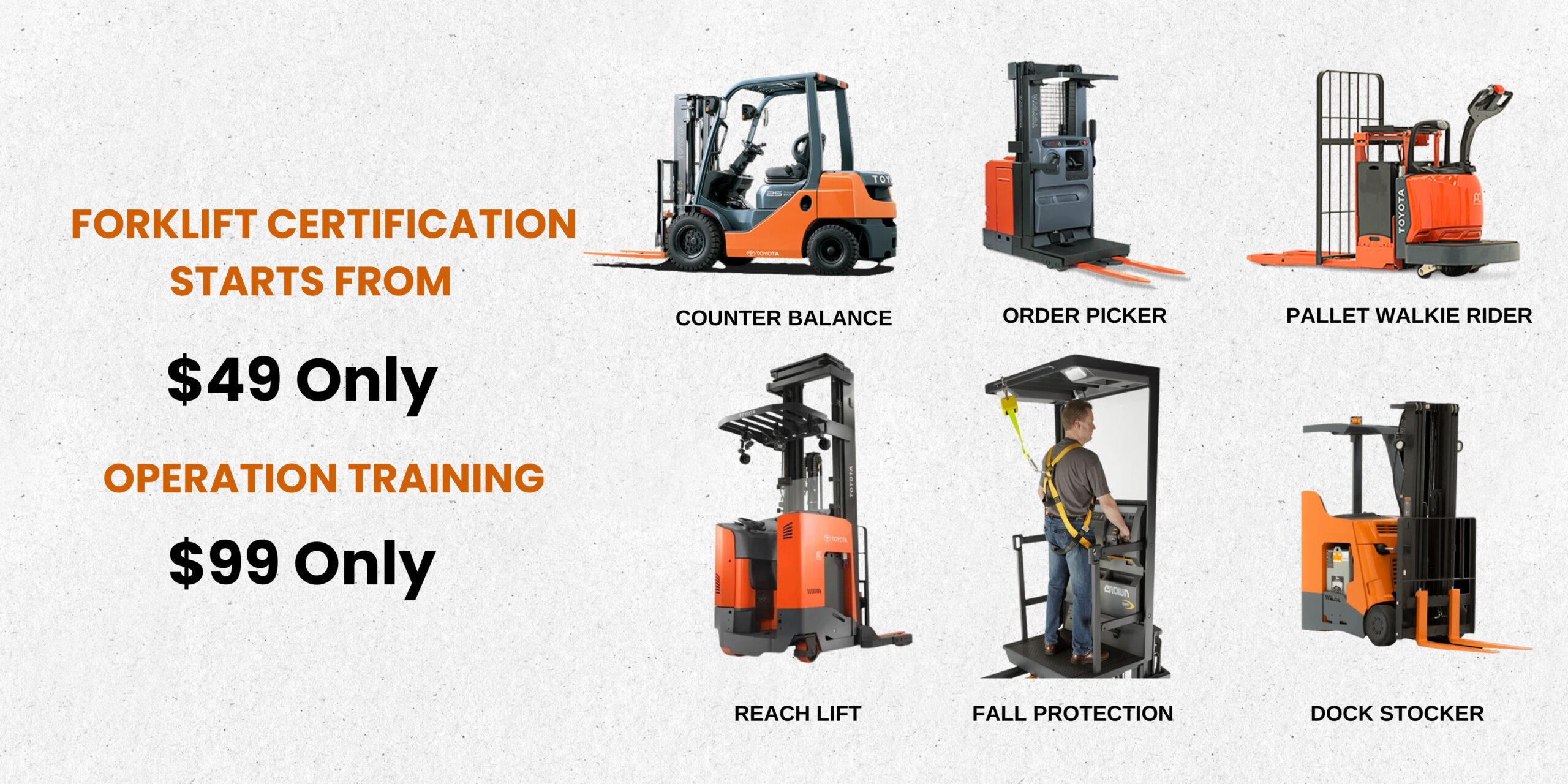 We believe everyone should have access to quality training. That’s why we offer competitive rates for all our courses, including Forklift Certification Starts from $49 only.